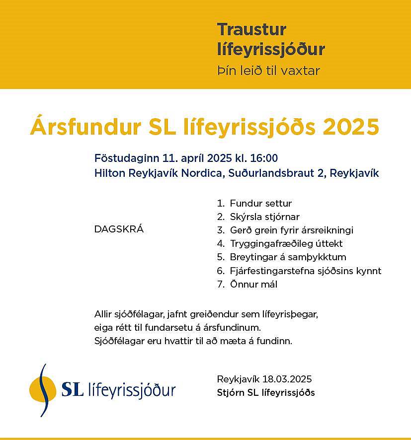 SL ber nú að taka fullt tillit til greiðslna frá Tryggingastofnun (TR) þegar örorkulífeyrir frá sjóðnum er reiknaður frá september 2025.